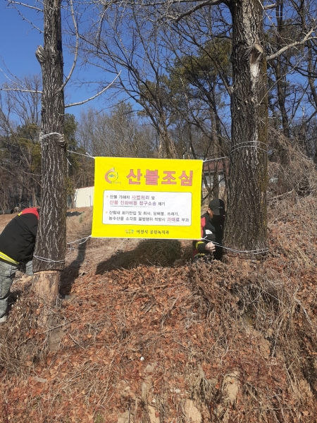 또한, 읍면 산불감시원 30명은 산림인접지역을 순찰하며 쓰레기, 영농부산물 등 소각행위 적발, 계도와 영농부산물 파쇄작업을 시행한다.