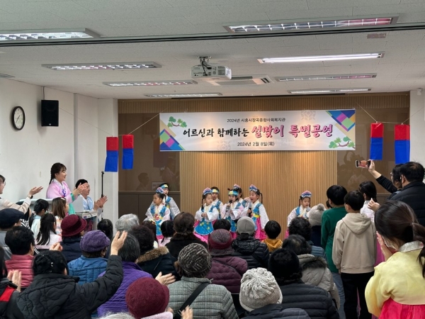 8일에는 ‘시립장현샛별어린이집’ 아동들과 시흥시장곡종합사회복지관 장구&민요 중급반 수강생들의 공연이 펼쳐져 복지관 어르신들에게 흥겨운 시간을 선사했다.