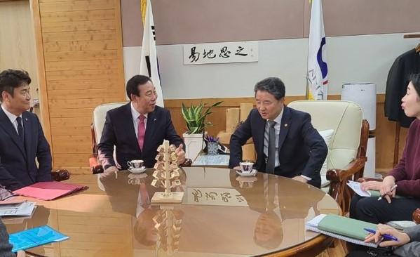 [금요저널] 최민호 세종특별자치시장이 8일 정부대전청사에서 남성현 산림청장을 만나 국제정원도시박람회의 성공적 개최와 세종시 정원산업 육성을 위한 정부의 관심과 지원을 요청했다.