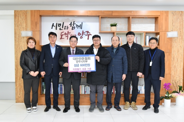 이어 대한한돈협회 양주시지부에서도 성금 600만원을 기부했다고 밝혔다.