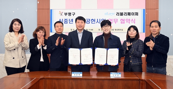 [금요저널] 부평구는 지난 13일 구청 상황실에서 사회적기업 ‘러블리페이퍼’와 신중년 사회공헌활동 사업을 위한 업무 약정을 체결했다.