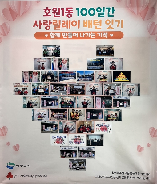 [금요저널] 의정부시 호원1동주민센터는 ‘100일간 사랑릴레이 배턴 잇기’를 지역주민, 단체·기업들의 열성적인 참여로 성황리에 마쳤다고 15일 밝혔다.