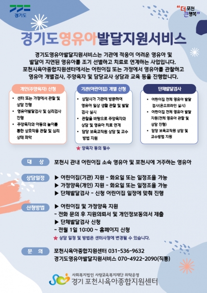 포천시육아종합지원센터, 2024 ‘경기도영유아발달지원서비스’ 사업안내