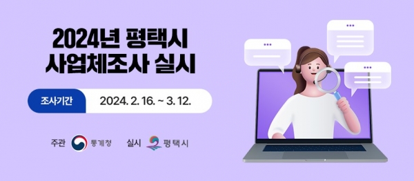 [금요저널] 평택시는 2월 16일부터 3월 12일까지 통계청 주관으로 실시하는 2024년 사업체조사를 실시한다고 밝혔다.
