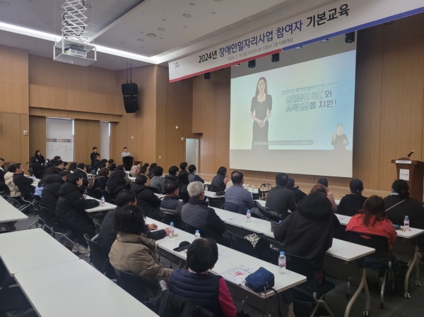 이번 장애인일자리사업 교육에선 ▲2024년 장애인일자리사업 지침 안내 ▲안전보건교육 ▲장애인 인식개선 등의 필수교육을 진행했다.