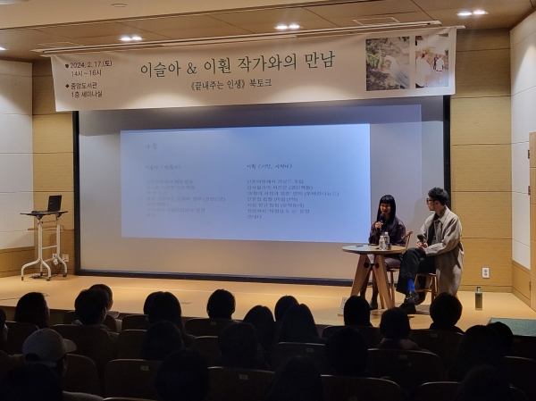 이슬아 작가와 이훤 작가는 “오늘 만남의 자리에 함께해 따뜻한 시선으로 경청해주신 독자분들께 감사하다”고 말했다.