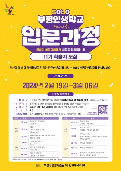 부평구, 5060 부평인생학교 11기 수강생 모집