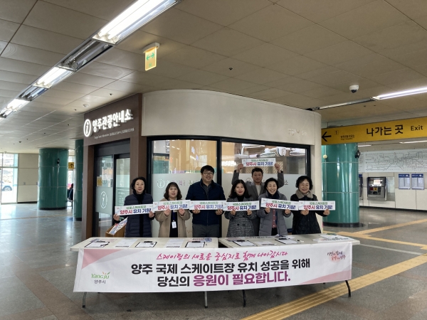 특히 양주1동 직원들은 국제스케이트장 유치 필요성과 파급효과가 담긴 홍보물을 배부하며 시민 공감대 확산을 위해 적극 나섰다.