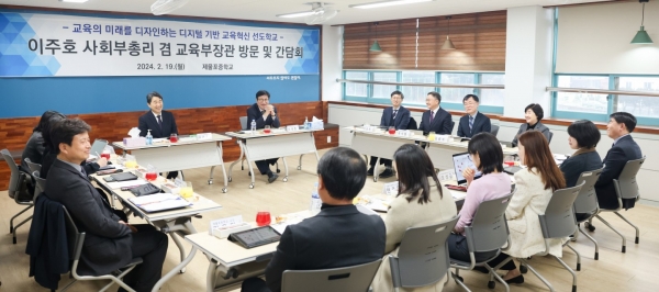 [금요저널] 도성훈 인천광역시교육감은 이주호 부총리 겸 교육부 장관과 19일 제물포중학교에서 디지털 대전환 시대 학교의 변화 및 교사의 역할 변화를 주제로 교직원 간담회를 진행했다.