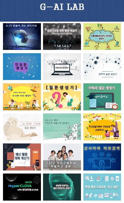 2023년에는 NAVER CLOUD와 협약을 통해 학교지원종합자료실에 생성형 AI 서비스를 국내 공공기관 최초로 도입했으며 인공지능 활용 실험실을 구성해 학교 현장의 업무경감과 교수학습 지원에 획기적인 사례를 만들어 가고 있다.