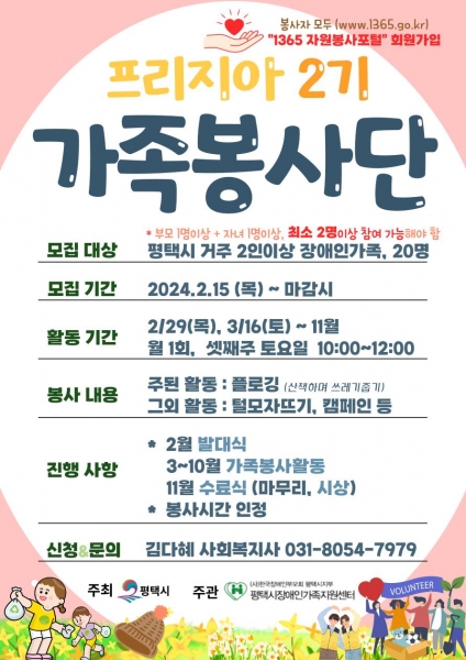 장애인가족봉사단 참여 대상은 평택시에 거주하는 장애인 가족 구성원이면 누구나 참여할 수 있다.