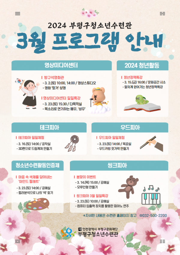 부평구 청소년수련관, 3월 청소년 프로그램 운영