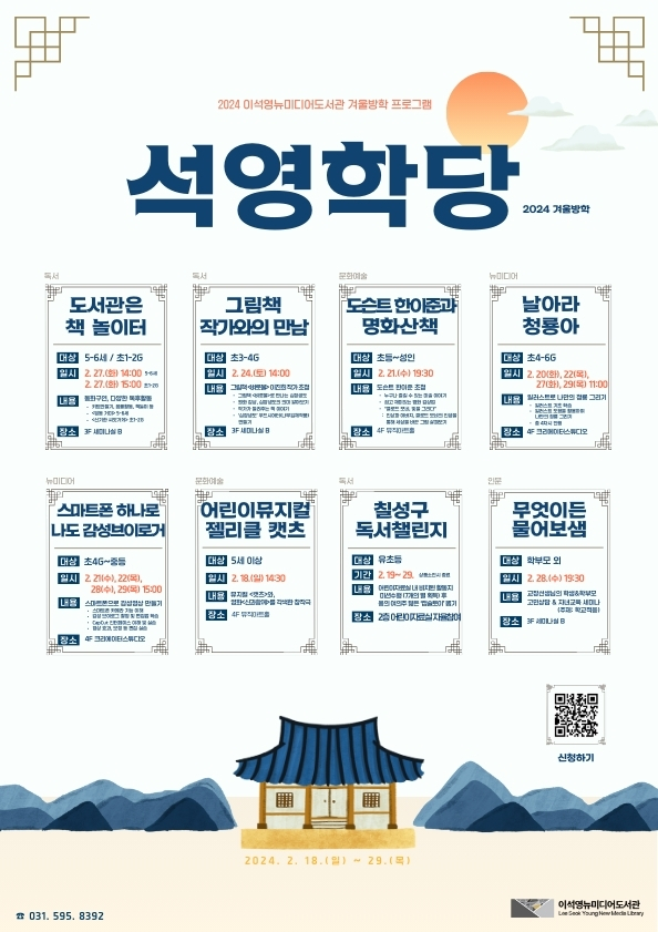 석영학당에는‘2024 갑진년, 값진 겨울방학 마무리를 위한 석영학당’이라는 테마 아래 놀이, 체험 강좌 등 다양한 프로그램이 마련되어 있다.