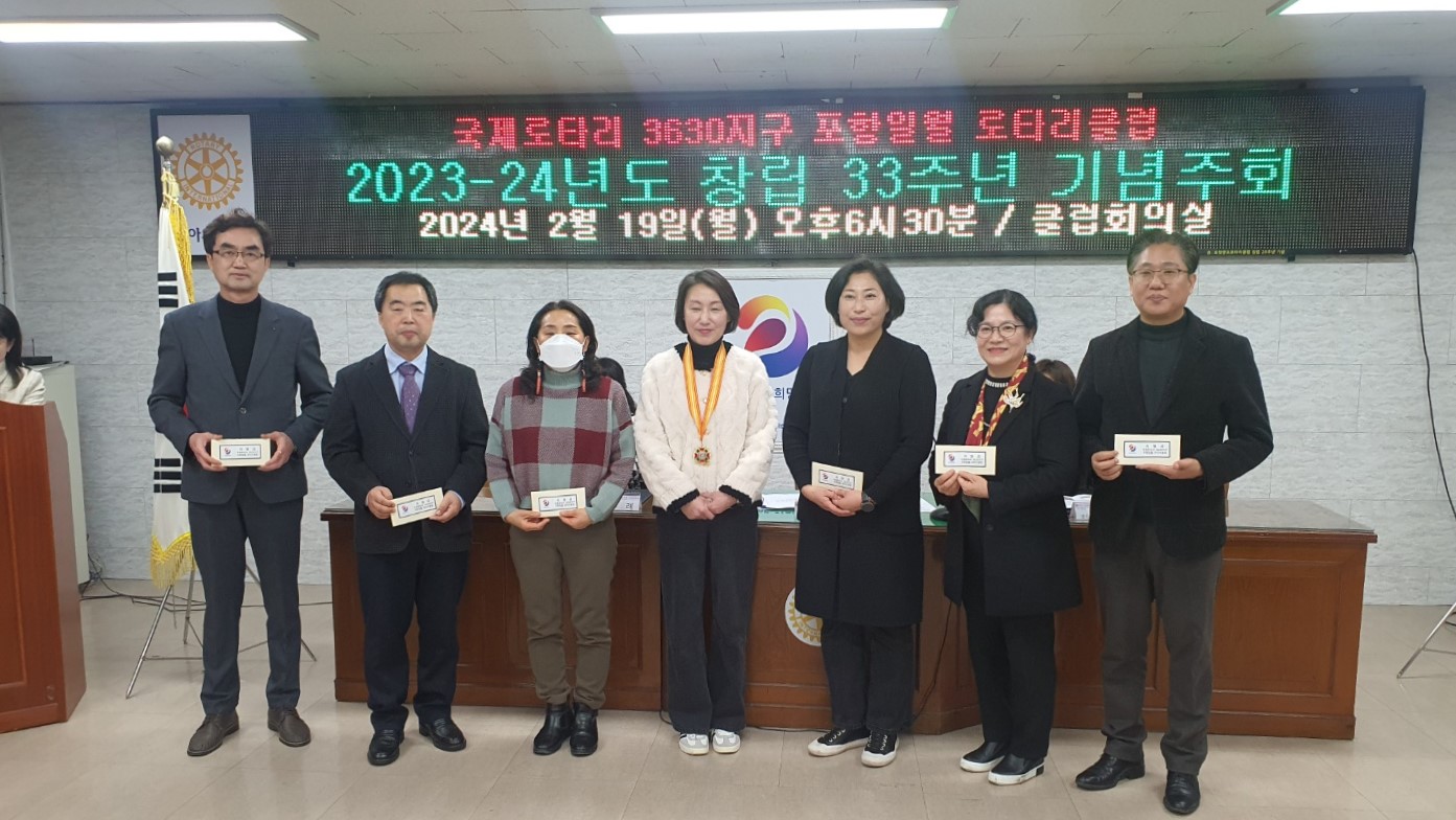 □ 포항명도학교(교장 김재규)는 2024. 2. 19.(월) ‘국제로타리 3630지구 포항일월로타리클럽’ 창립기념주회에서 자매결연단체 장학금 전달식에 참석하여 학교발전기금을 전달받았다.