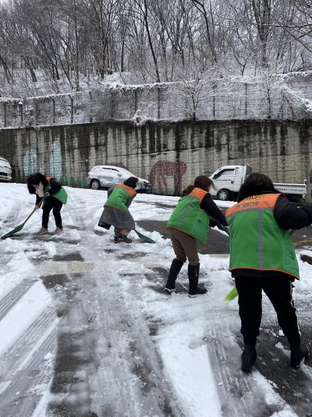특히 출근길 혼란이 예상돼, 군자동 지역 특성상 제설 차량 진입이 어려운 구간이 많아 자율방재단의 역할이 매우 중요했다.