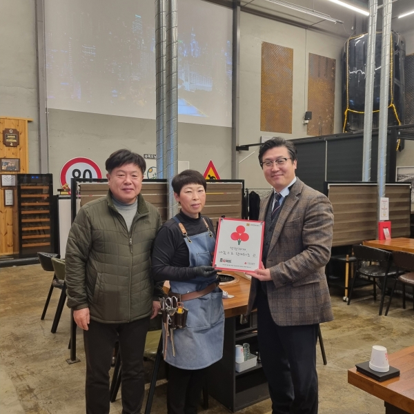 [금요저널] 평택행복나눔본부는 육팩트에 착한가게 현판을 전달했다.