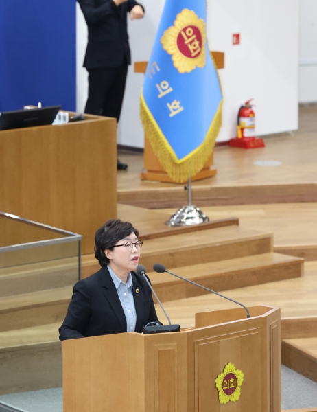 [금요저널] 박옥분 경기도의원은 20일 경기도의회 제373회 임시회 제3차 본회의에서 도정 및 교육행정에 대해 질의해 저출생 극복의 심각성에 대해 지적하고 이에 대해 양육에 있어서의 성평등을 위한 실질적인 대안 마련을 촉구했다.