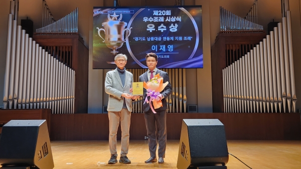 [금요저널] 경기도의회 이재영 의원이 23일 숭실대학교 한경직기념관에서 열린 제20회 한국지방자치학회 우수조례 시상식에서 ‘경기도 납품대금 연동제 지원 조례’로 우수상을 받는 영예를 얻었다.