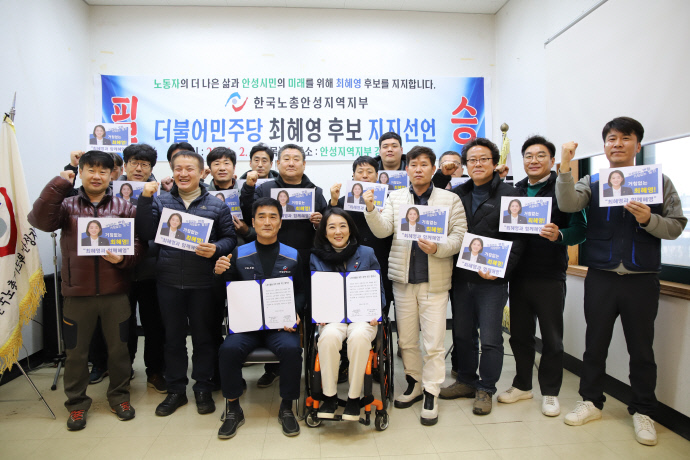 한국노총 안성지역지부가 지난 22일 최혜영 더불어민주당 안성 예비후보와 정책협약식을 맺고 최 예비후보에 대한 지지를 선언했다.