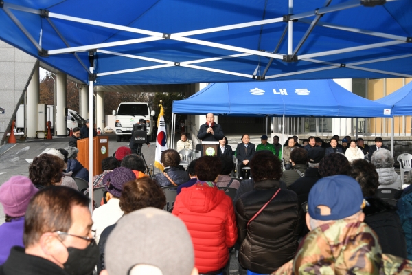 식전행사로는 국악한마당이 펼쳐져 주민들의 흥을 돋우었으며 본부석 한쪽에서는 효자손에 새해 덕담 문구를 써주는 체험 부스를 운영해 지역 주민들의 큰 호응을 받았다.
