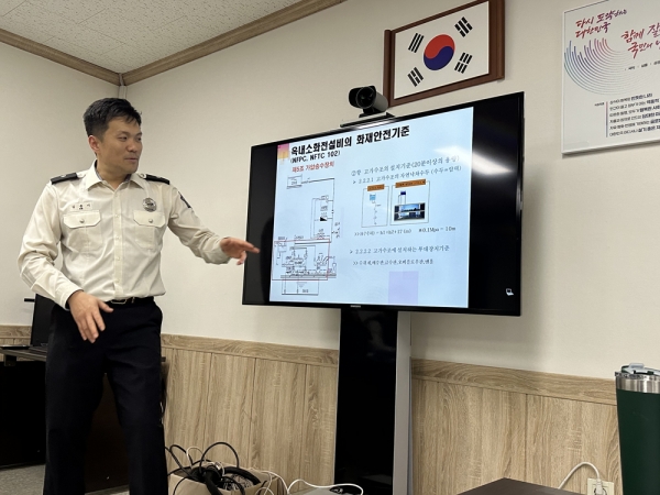 주요 강의 내용은 ▲화재안전기준에 관한 사항 ▲건축민원 시 중점확인사항 및 민원처리절차 등 ▲화재안전조사 시 유의사항 등으로 이론과 실무를 겸비한 김용기 소방위의 해박한 지식과 경험을 바탕으로 교육이 이루어진다.