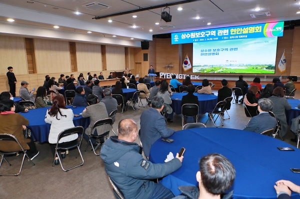 이날 설명회에서는 각계 분야를 대표하는 단체 등 100여명의 주민이 참여해 상수원 보호구역 관련 현안을 청취하고 향후 예측되는 변화와 환경문제 등에 대해 논의했다.