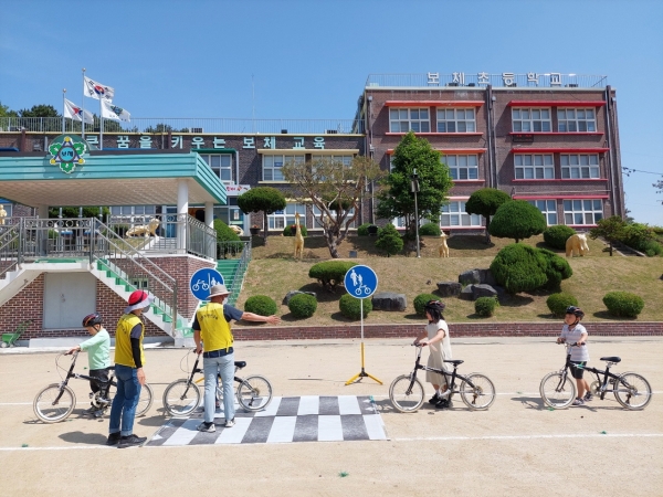 교육은 교육지원청과 각 학교 일정을 조율해 진행되며 ▲자전거 안전 점검과 관리 방법, ▲자전거 안전 수칙, ▲안전을 위한 장비 착용, ▲안전 표지판, ▲교통신호 등 기본적인 안전 관련 이론과 도로 주행 연습을 병행해 진행된다.