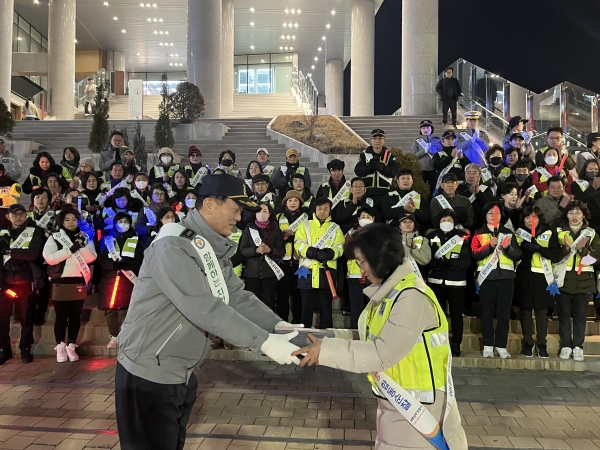 [금요저널] 세종남부경찰서에서는 ‘24. 2. 26, 19:00∼21:00까지 자율방범연합회원을 비롯한 생활안전연합회원, 모범운전자회원, 시민경찰학교 졸업 시민 등이 함께하는 범죄예방을 위한 합동 캠페인을 실시했다.