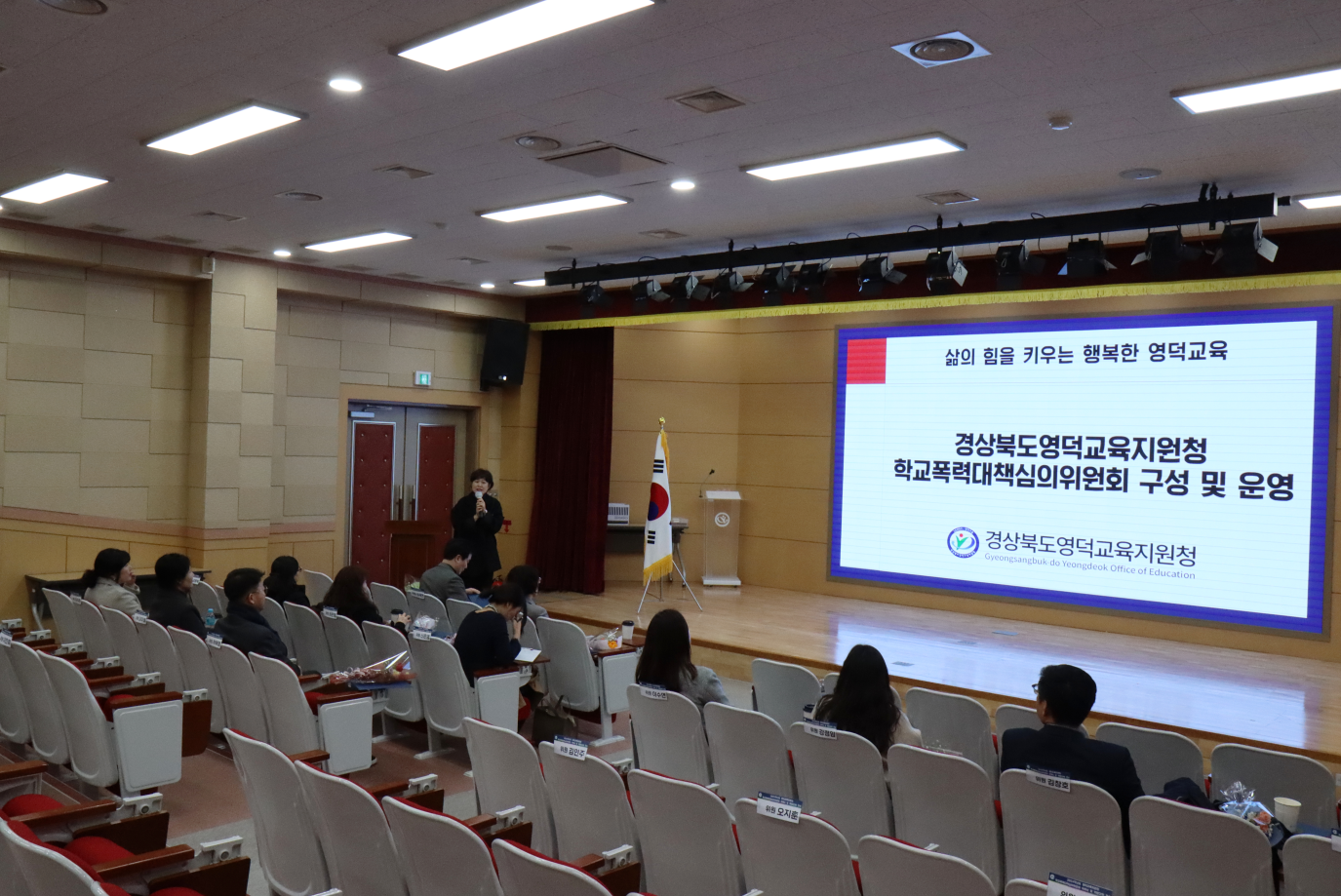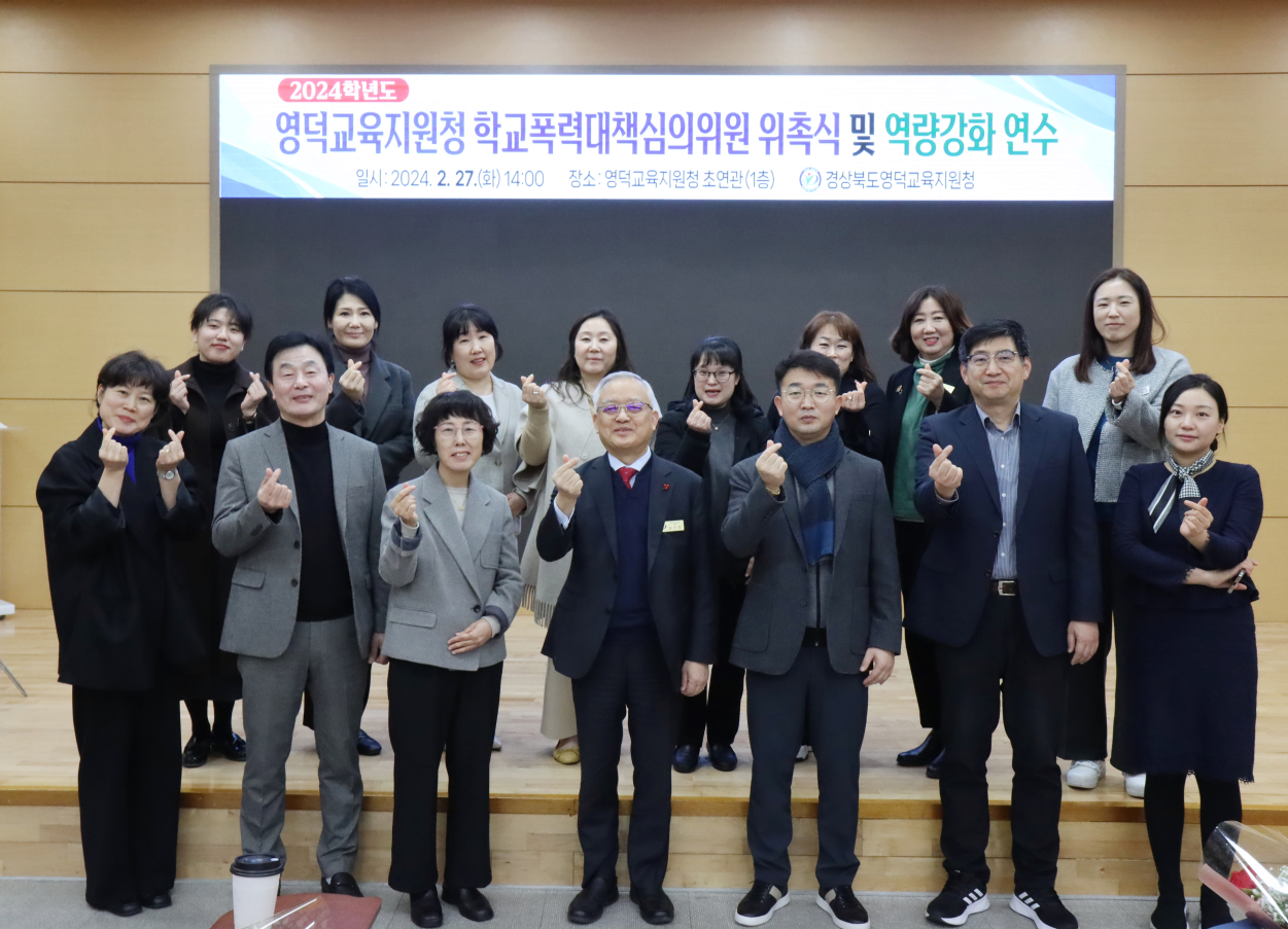경상북도영덕교육지원청(교육장 윤인한)은 2024년 2월 27일(화) 1층 초연관에서 2024학년도 학교폭력대책심의위원회 심의위원 20명을 대상으로 위촉식 및 역량 강화 연수를 실시하였다. 영덕교육지원청 학교폭력대책심의위원회는 ‘학교폭력 예방 및 대책에 관한 법률’ 제12조에 규정된 것으로, 교원, 학부모, 변호사, 경찰관, 청소년 선도 및 보호 전문가들로 구성되었다.