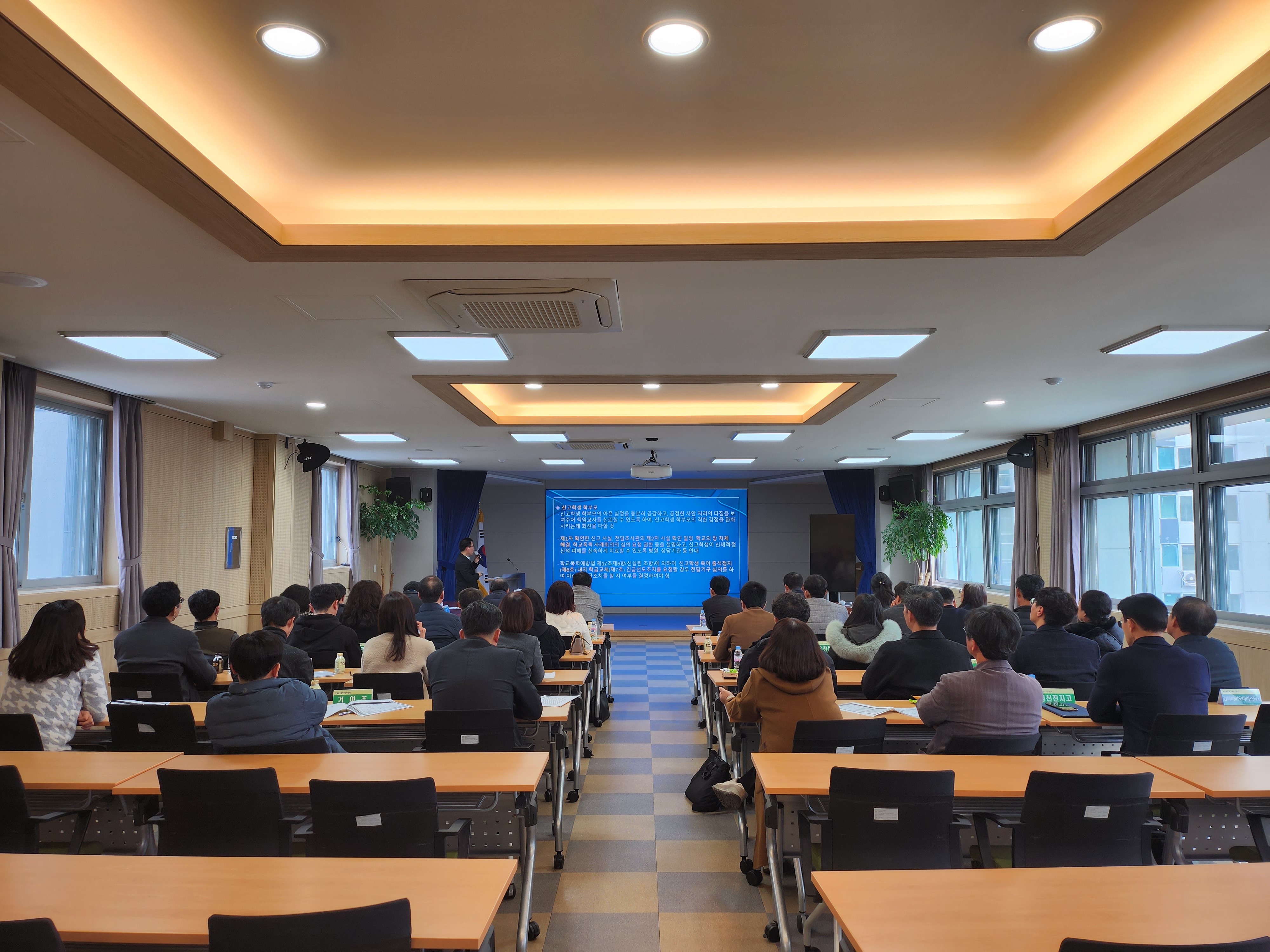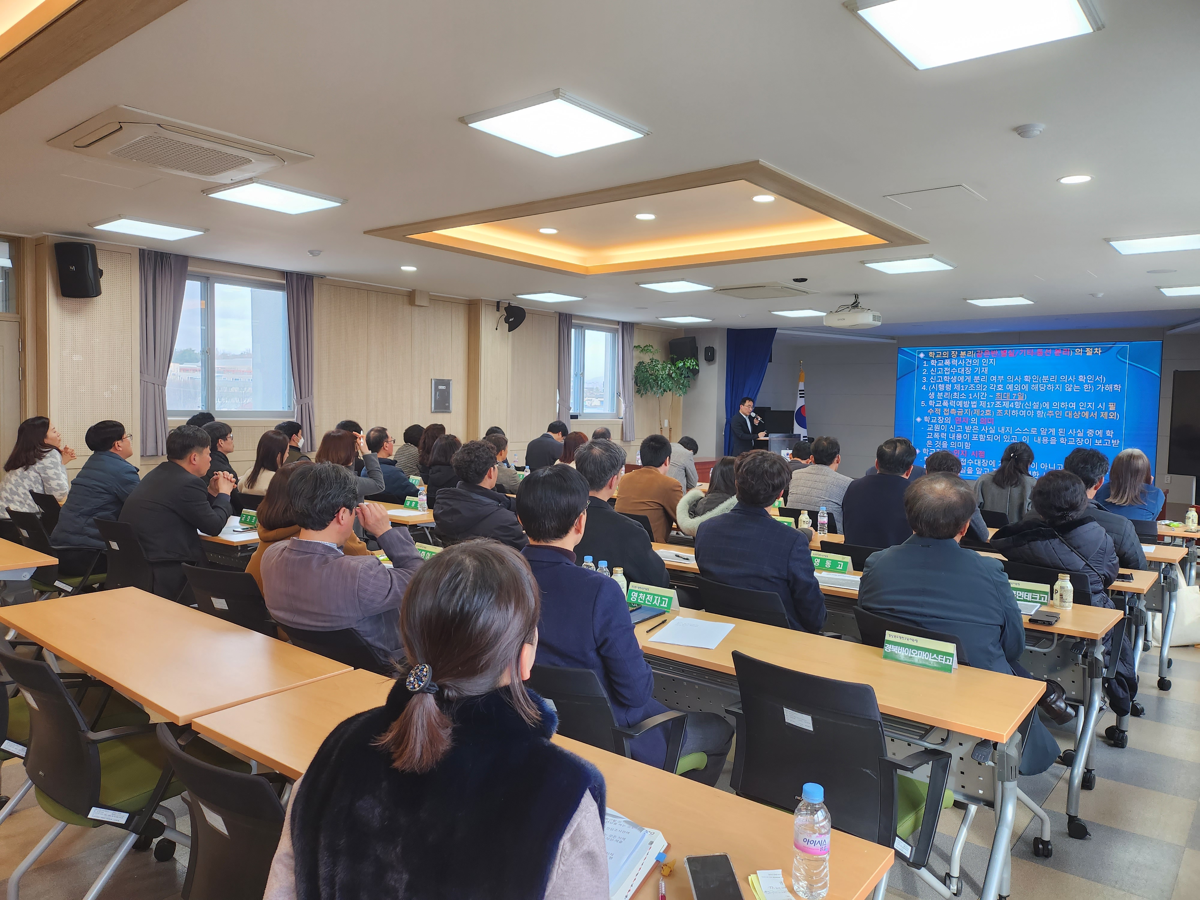 □ 영천교육지원청(교육장 김희수)은 2024년 2월 27일(화) 4층 대회의실에서 학교폭력제로센터 및 전담조사관 제도 안내를 위한 관내 전체 학교 교감 대상 연수를 실시하였다.