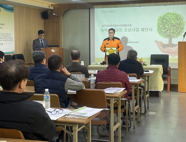 [금요저널] 양주소방서는 27일 겨울철 화재안전대책 일환으로 검준염색사업협동조합정기총회에 참석해 외국인 근로자 안전권 보장을 위해 추진하는 특수 시책을 설명하는 시간을 가졌다.