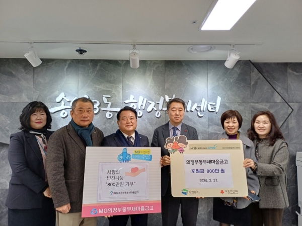 [금요저널] 의정부시 송산3동행정복지센터는 2월 27일 의정부동부새마을금고가 ‘2024년 송산권역 사랑의 반찬 나눔 사업’을 위한 후원금 800만원을 기탁했다고 밝혔다.