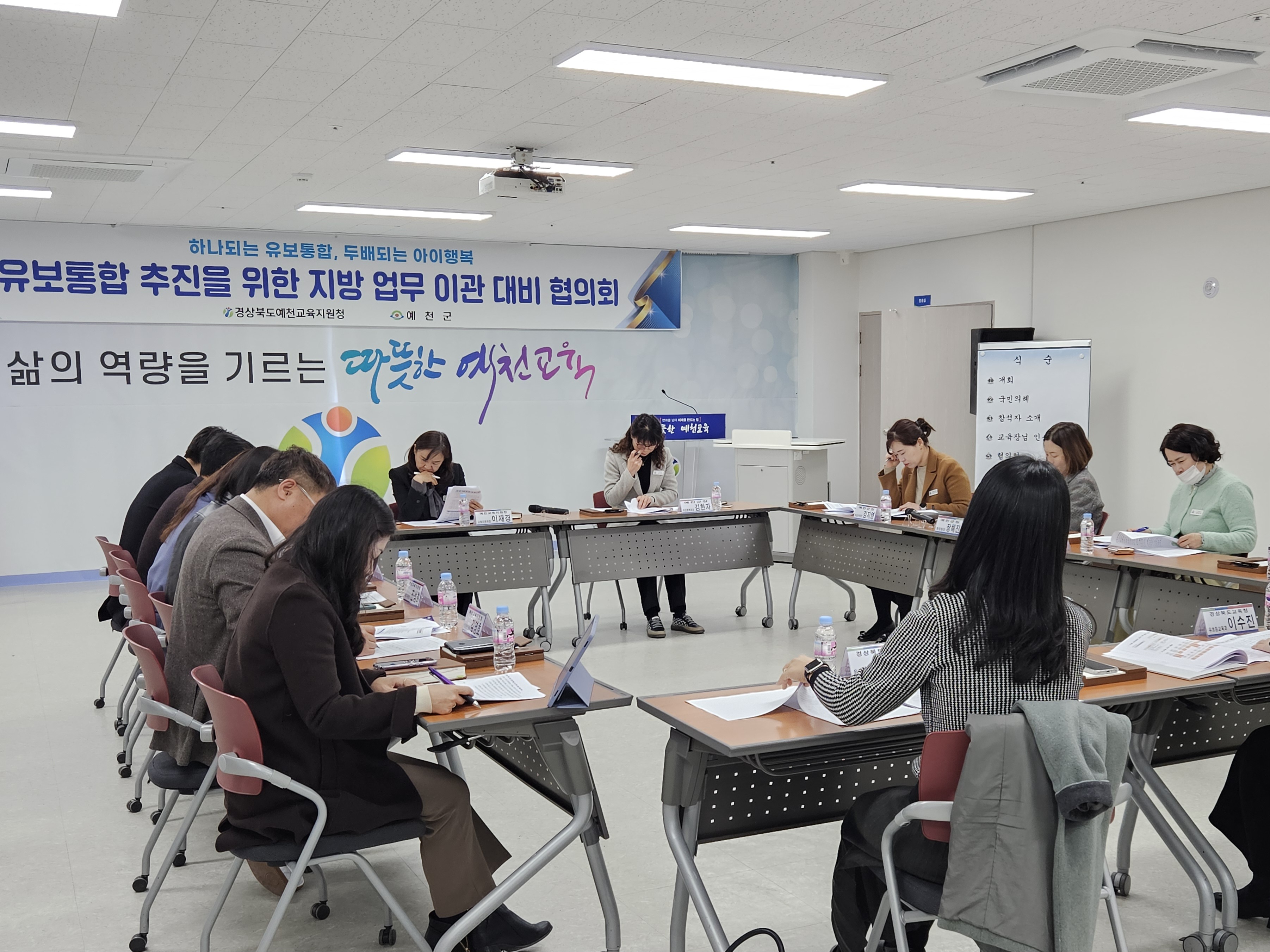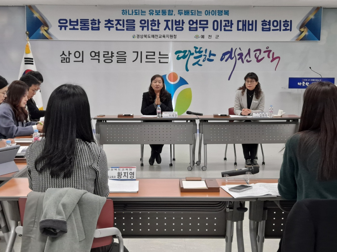 □ 예천교육지원청과 예천군청은‘유보통합 추진을 위한 지방 업무 이관 대비 협의체’를 구성해 유보통합 관련 업무관계자 간 활발한 소통을 위한 협력 체계를 구축하였다.
