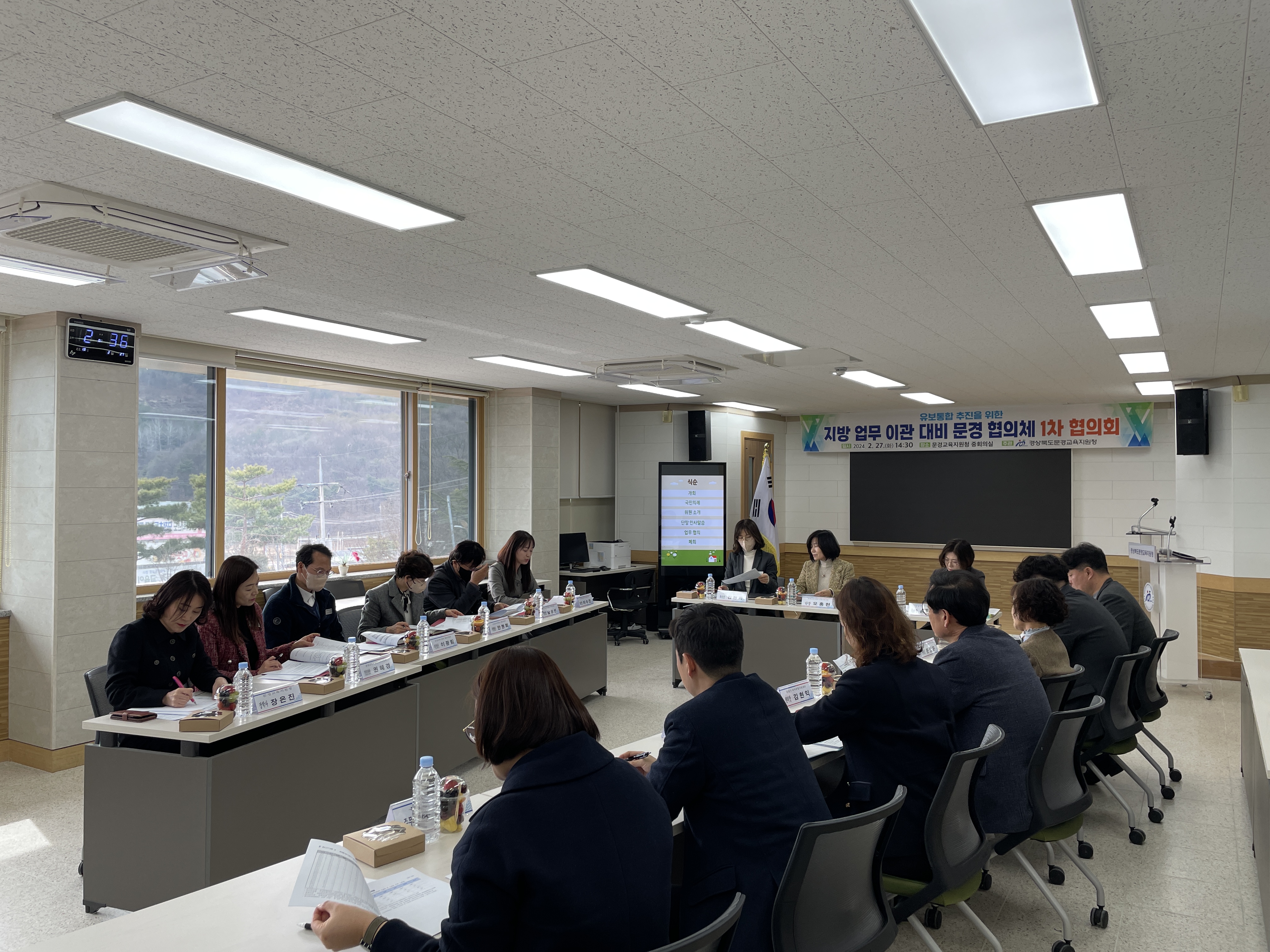 □ 문경교육지원청(이경옥 교육장)은 2월 27일(화)에 문경교육지원청 2층 중회의실에서 유보통합 추진을 위한 지방 업무 이관 대비 협의체 1차 협의회를 실시하였다.