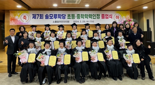[금요저널] 소흘읍 주민자치센터는 지난 28일 소흘읍 행정복지센터 강당에서 ‘솔모루학당 – 초등, 중학 학력인정 문해교실’의 졸업식을 개최했다.