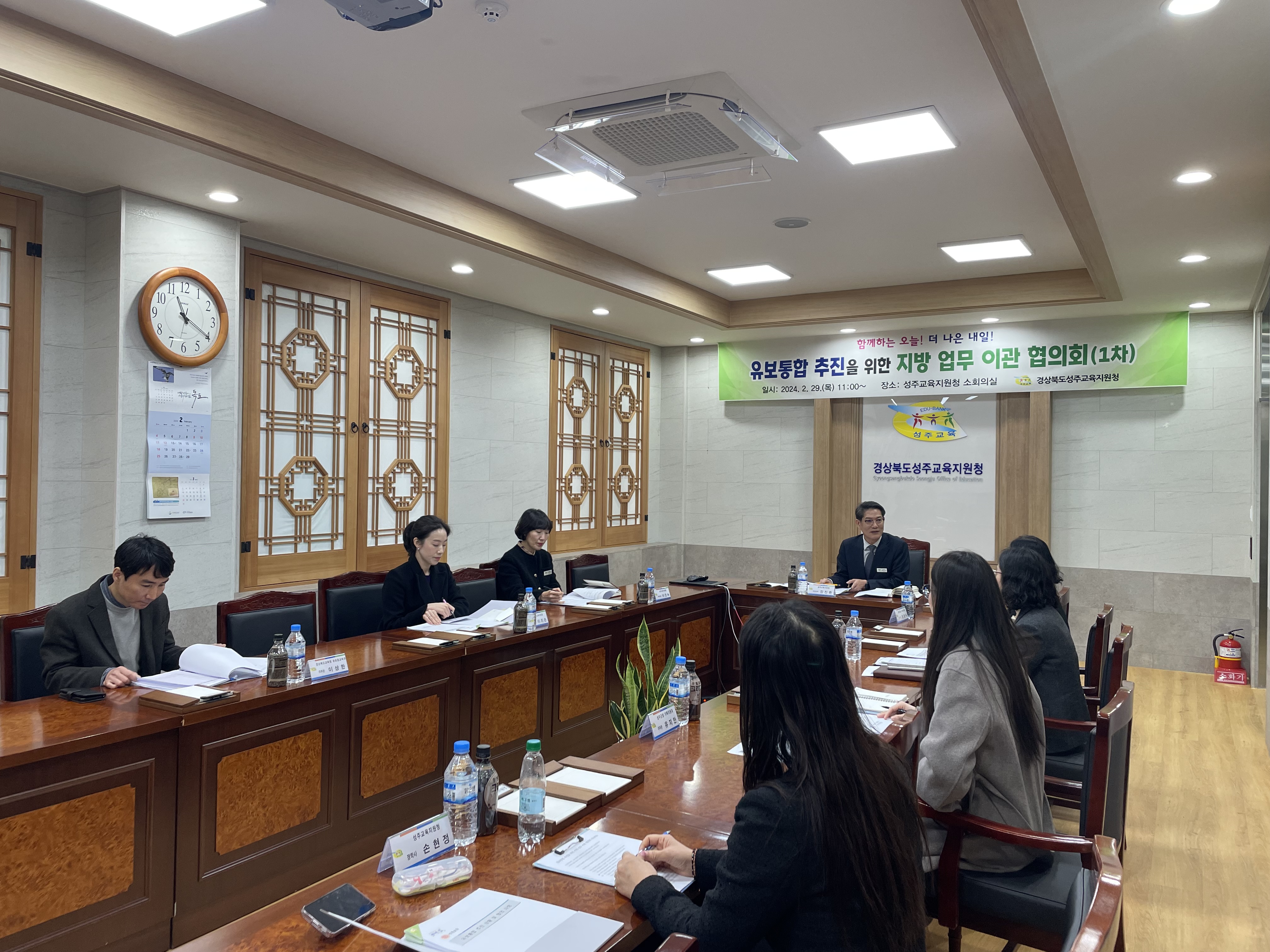 □ 경상북도성주교육지원청(교육장 채종원)은 2월 29일(목) 11시 성주교육지원청 소회의실에서 유보통합 추진을 위한 지방업무 이관 협의회를 개최하였다.