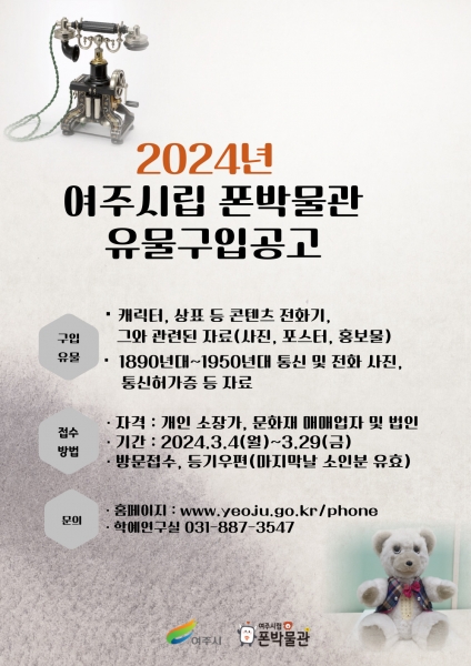 [금요저널] 여주시의 여주시립 폰박물관에서는 2024년도 유물 공개 구입을 진행한다.