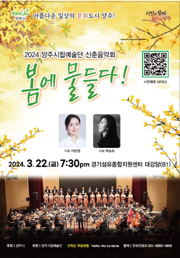 [금요저널] 양주시가 오는 22일 오후 7시 30분 경기섬유종합지원센터 대강당에서 2024년 양주시립예술단 신춘음악회 ‘봄에 물들다’를 개최한다고 4일 밝혔다.