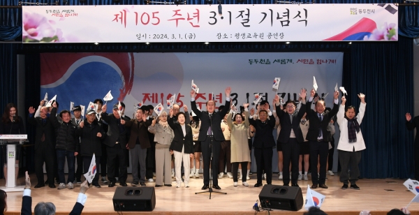 [금요저널] 동두천시는 지난 1일 105주년 3.1절을 맞아 평생교육원 공연장에서 독립운동에 앞장섰던 선열들의 희생을 기억하고 고귀한 정신을 계승하기 위해 기념식을 개최했다.