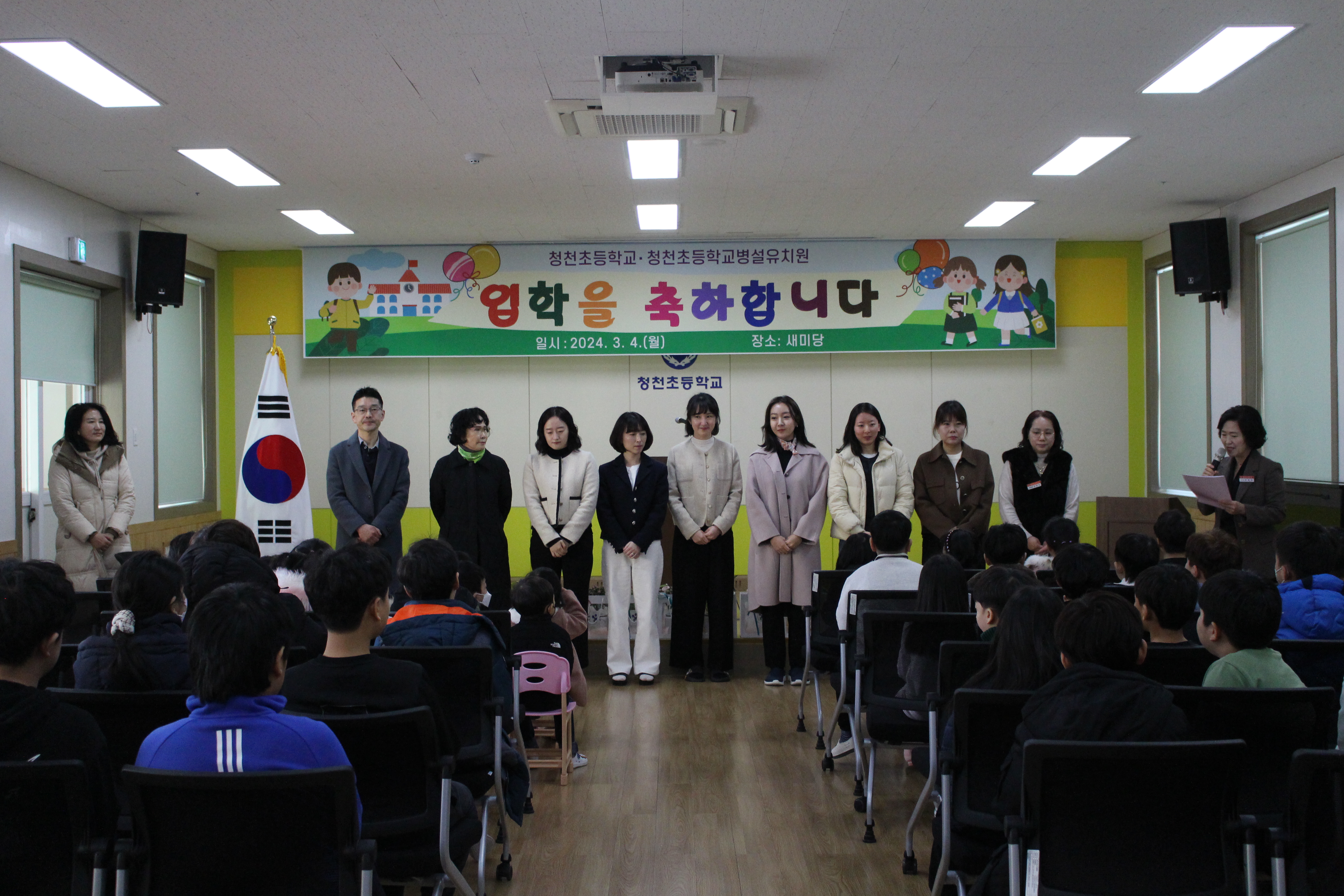 □ 청천초등학교(교장 최영희)는 3월 4일(월) 10시 30분부터 새미당에서 2024학년도 유·초등 시업식 및 입학식을 통합 개최하였다.