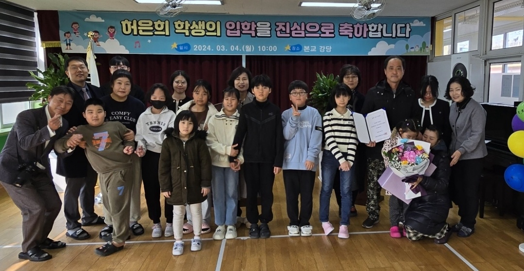 □ 의성군 구천초등학교(교장 정찬명)에서는 3월 4일(월) 전교생(9명)과 함께 1층 강당에서 2024학년도 입학식을 실시했다. 이번 입학식에는 1학년 허은희 학생이 입학하였고 2명의 전학생을 포함하여 작년까지 전교생 7명이던 구천초등학교는 전교생 9명으로 새학기를 시작하게 되었다. 이번 입학식에서 입학생은 장학금을 수여받았고 학교에서 정성스럽게 준비한 선물을 교장선생님과 담임선생님으로부터 전달받았다.