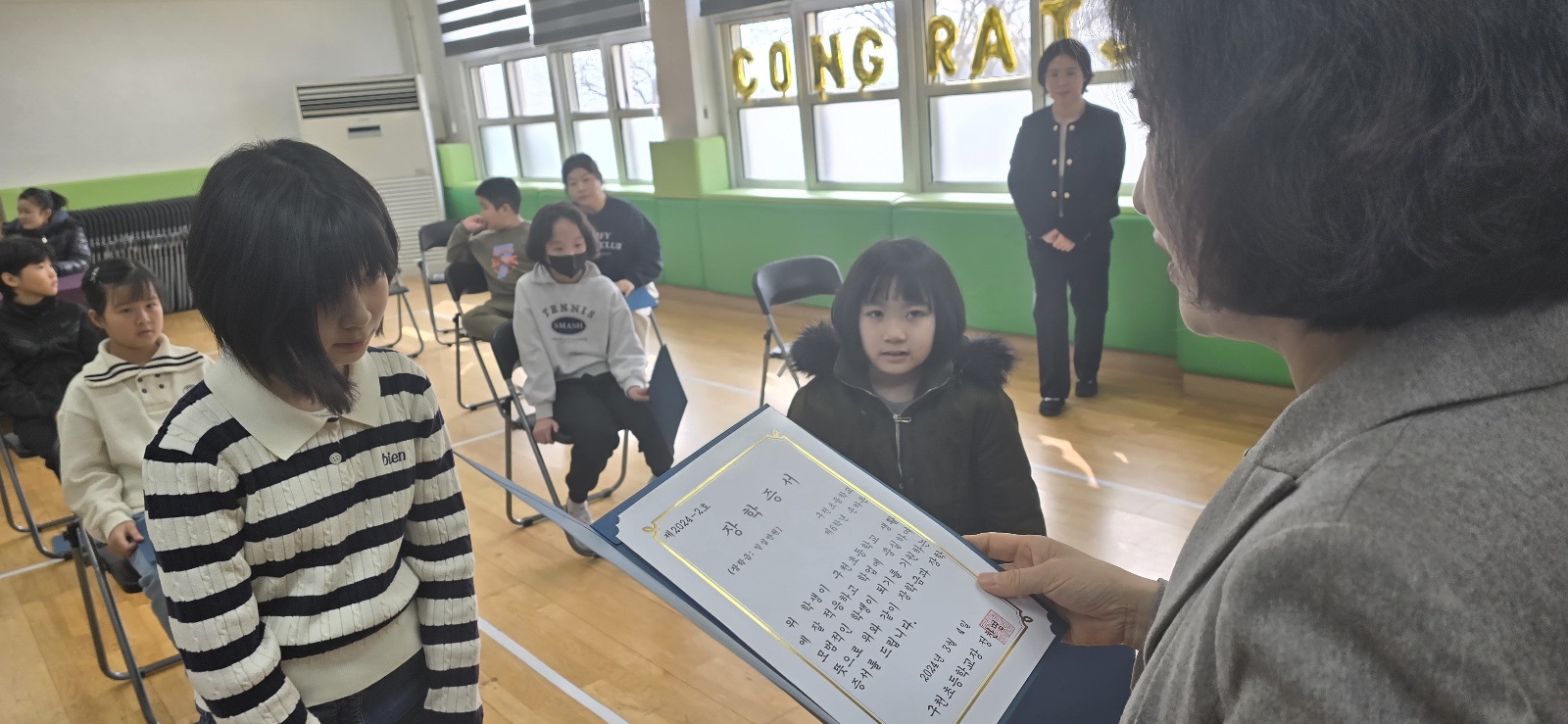 특히 구천초등학교는 2024학년도 재학생 전학생 모두에게 장학금을 수여하여 학생들이 호연지기를 가지고 더 활기찬 학습을 이어가도록 독려하였다. 2024학년도 구천초등학교는 작은 학교의 강점을 살려 전교생 자치활동 기반으로 경어를 사용하고 과제를 해결하며 진행되는 숙박형 체험활동 3회, 비숙박형 현장체험 5회, 의성미래교육지구 마을플레너 사업과 연계한 지역민과 함께하는 축제형 체육대회 및 작은 음악회, 인근 학교(단밀초)와 경북형 공동교육과정 운영 및 농촌지역의 환경적 특성을 반영한 늘봄학교등의 운영을 실시하여 2022개정교육과정 운영의 취지를 극대화하고 학생들의 바른 정체성과 학습자 행위성을 기르기 위한 작은학교 교육과정 운영을 알차게 시작하였다.