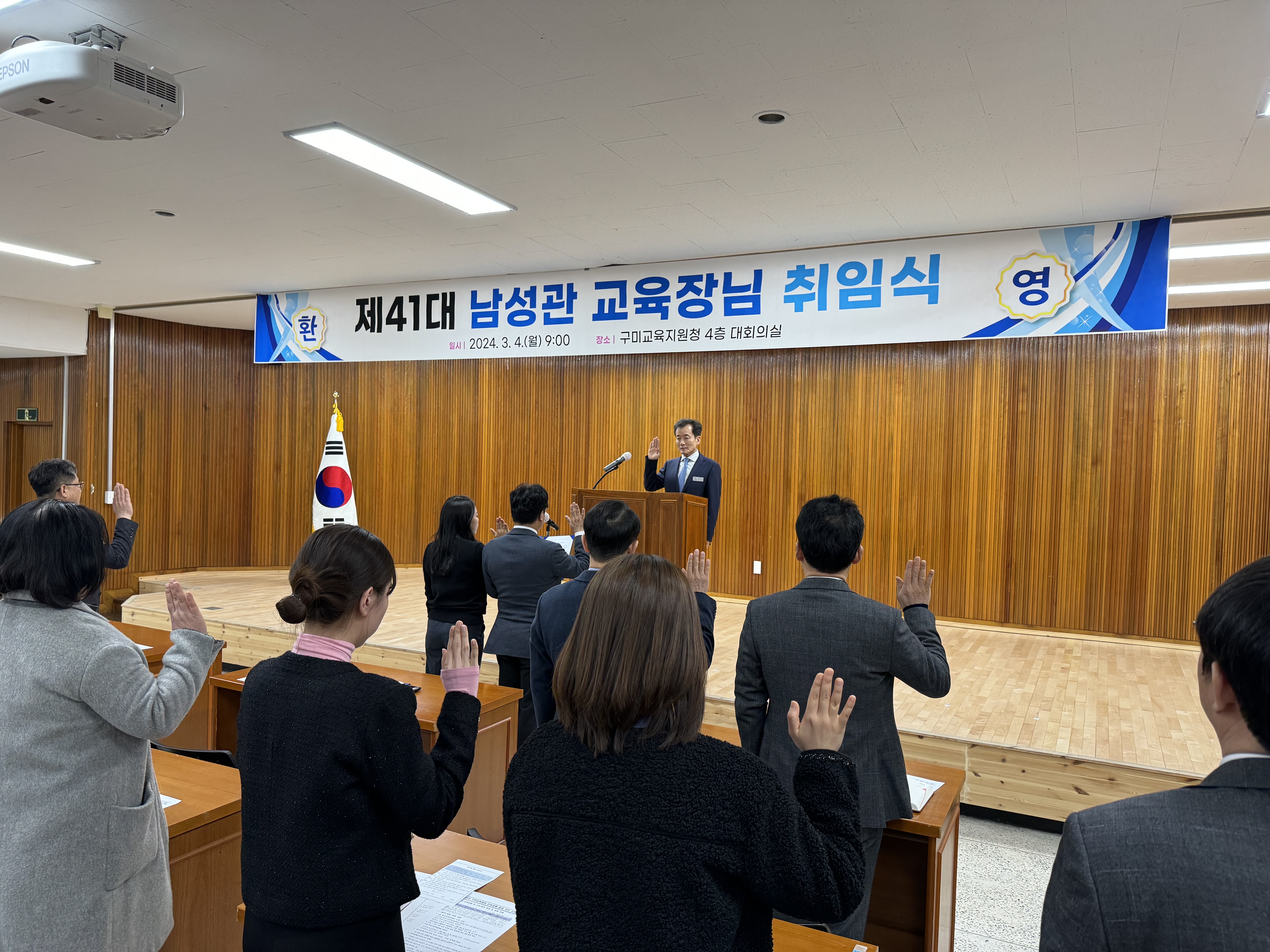 새로 부임한 남성관 교육장은 경상북도 영덕 출신으로 1986년 3월 사곡중학교 교사를 시작으로 영천중, 양북중, 영천여고 등 23년간 교사로 근무했다. 2009년부터는 김천교육지원청 장학사, 경상북도교육청 체육건강과 장학관으로 근무하였으며, 2022년 3월부터 경북체육고 교장으로 근무하다 2024년 3월 1일 구미교육지원청 제41대 교육장으로 취임했다.