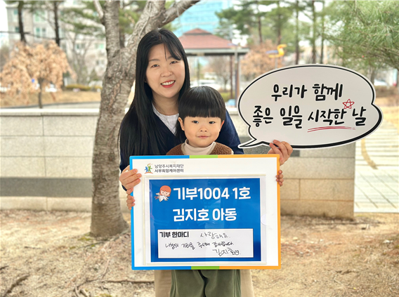 [금요저널] 남양주시 사회복지관 서부희망케어센터는 올해 나눔문화 확산을 위한‘기부1004 프로젝트’를 시작해 첫 번째 가입자로 최연소 참여자 김지호 어린이의 이름을 올렸다.