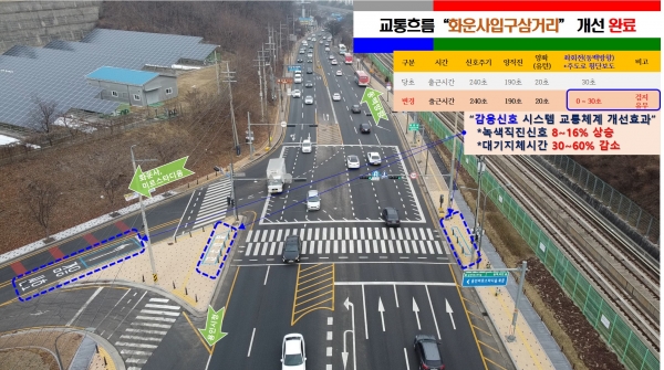 기존에는 불필요한 좌회전과 보행자 신호가 1주기당 최대 30초 발생해 직진 차량 신호 대기 시간이 길어지는 불편함이 있었다.