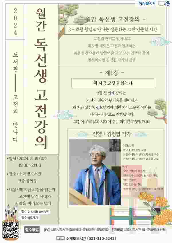 소래빛도서관, 고전을 만나다. ‘월간 독선생 고전강의’ 운영