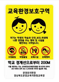 □ 문경교육지원청(이경옥 교육장)은 관내 유·초·중·고 11교에 교육환경보호구역 표지판을 설치했다