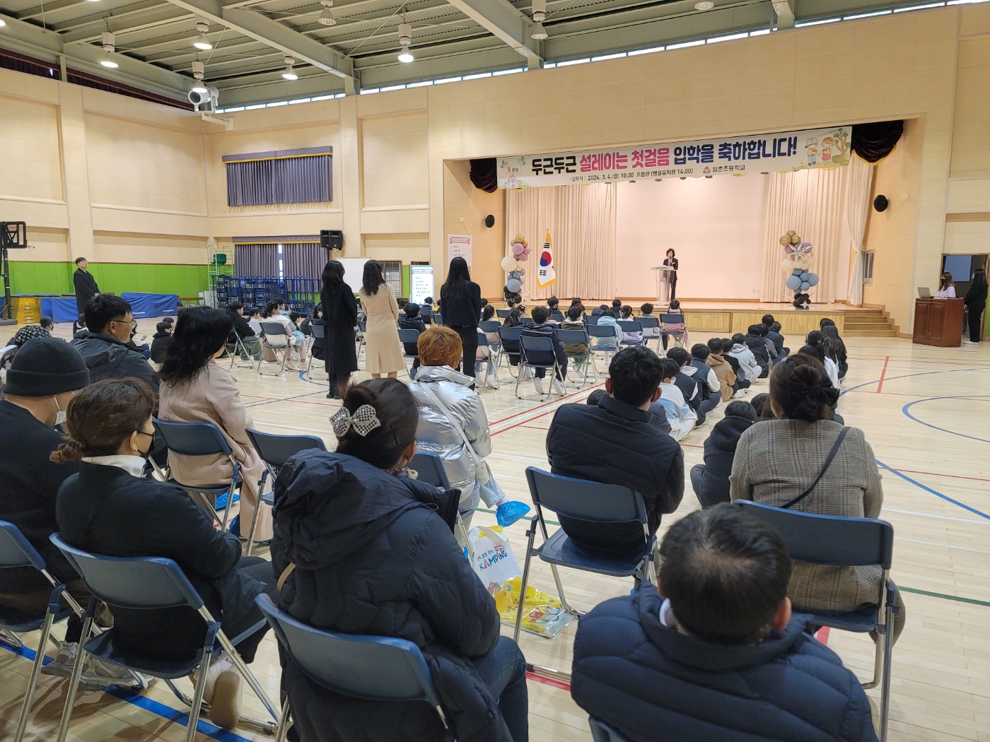 □ 새입학식에서 정인자 교장은 1학년 신입생 36명에 대한 입학 허가 선언과 입학 축하 선물을 증정하였다. 신입생 고○○학생은 “강당과 운동장이 엄청 넓어요. 교실에서 새로운 친구들을 만나 기뻐요”라며 입학의 기쁨을 나타내었다.