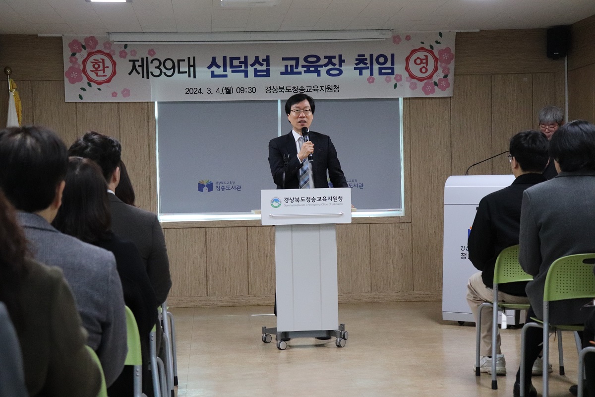 □ 청송교육지원청은 3월 4일(월) 청송도서관 2층 제2강의실에서 전 직원이 참석한 가운데 제39대 신덕섭 교육장 취임식을 가졌다.
