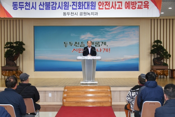 [금요저널] 동두천시는 5일 시청 대회의실에서 산불전문예방진화대 및 산불감시원, 산불방지대책본부 직원 약 60명을 대상으로 산불 예방 및 진화대책과 안전사고 예방에 대한 전문교육을 실시했다.